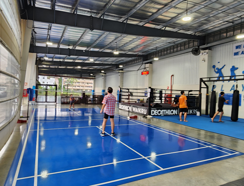 데카트론 입구에 들어서자 배드민턴과 복싱을 하고 있는 사람들을 만나게 됩니다.