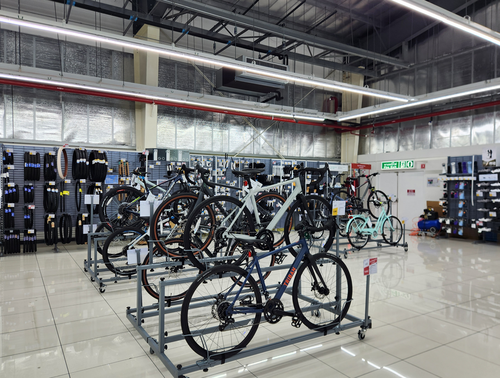 데카트론에는 운동복 뿐 아니라 자전거 및 운동 기구도 판매하고 있습니다.