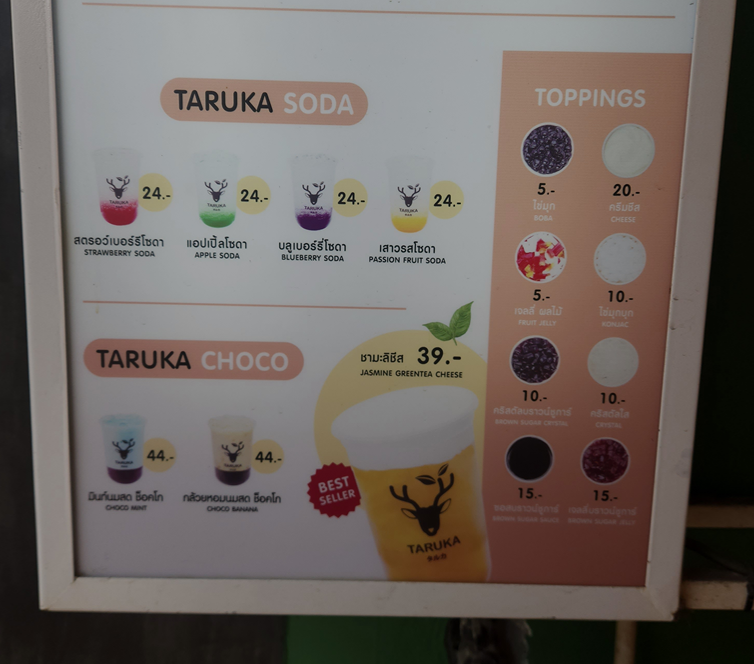음료수가 19바트 우리나라 돈 800원이었습니다. 처음 주문하려고 했던 버블티는 39바트 한화로 1700원가량 했습니다.