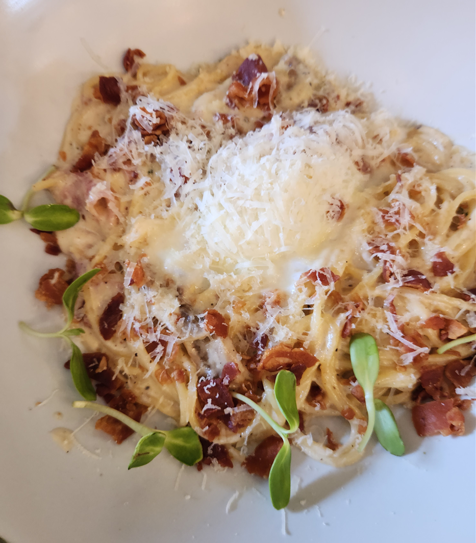 저희는 까르보나라와 바베큐 립, 티본 스테이크를 주문했습니다.