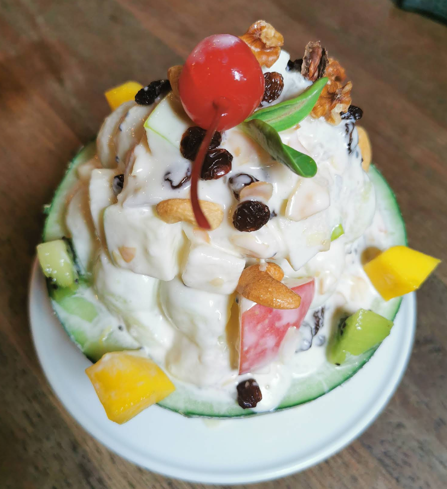 후식도 다양하게 있습니다. 레몬을 반잘라 넣은 과일 사라다는 오카쥬의 시그니처 후식메뉴입니다.