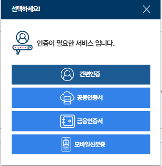 신청하기 버튼을 누르면 인증 방법 4가지가 나옵니다.