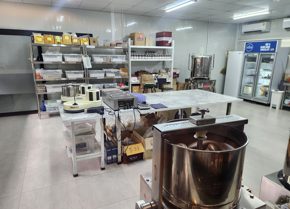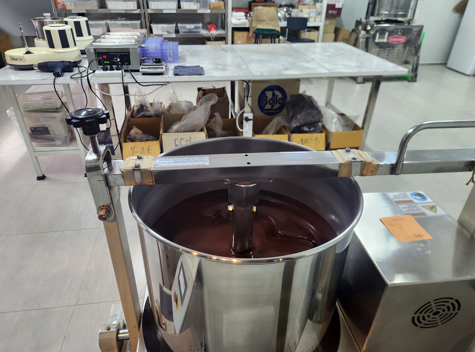 손님들에게까지 오픈할 수 있는 깔끔한 주방과 통 안에서 초콜릿이 녹여져 만들어 지는 과정을 눈으로 보니